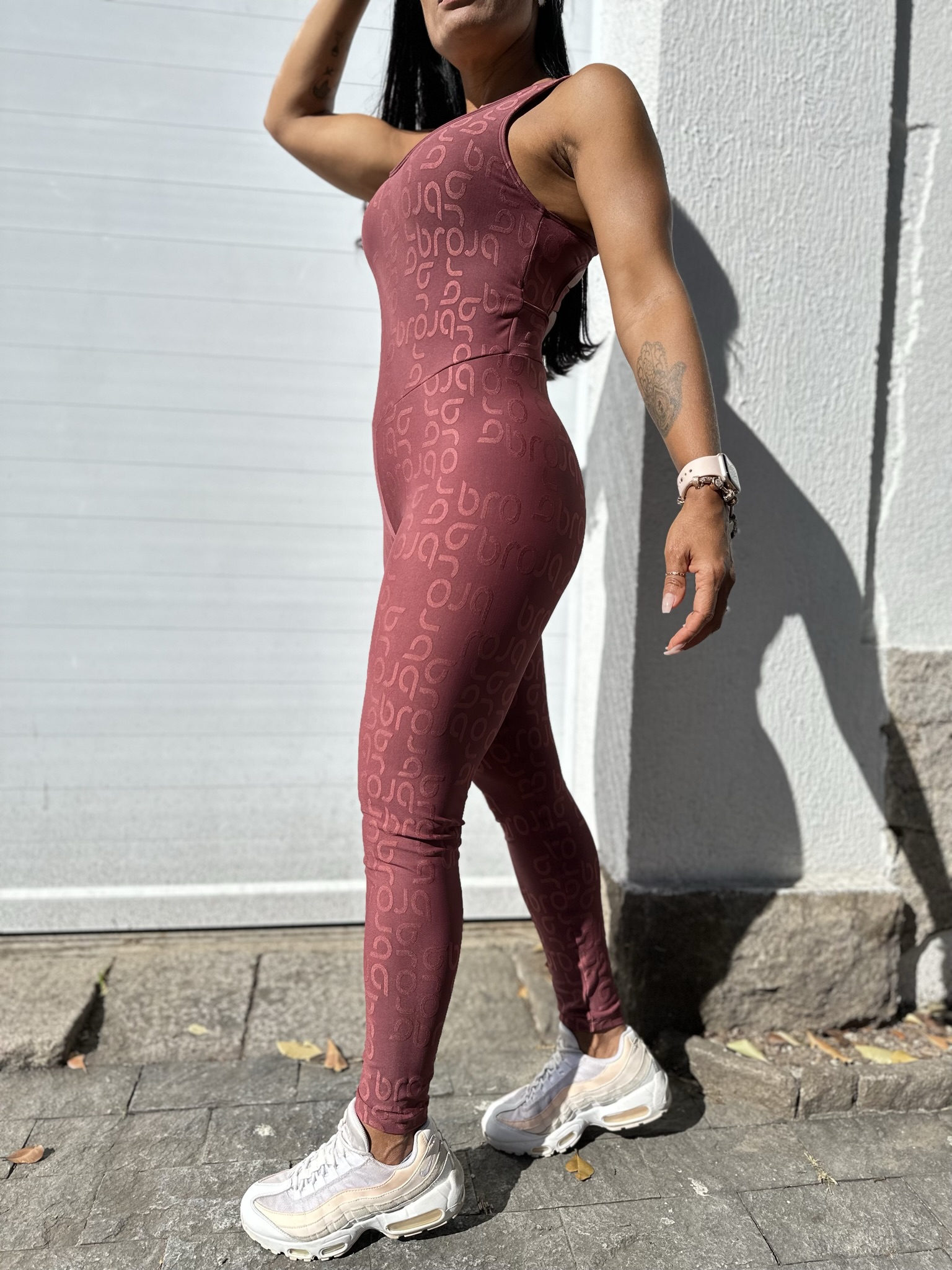 Macacão em estamparia jacquard exclusiva com monograma BRO é tom sobre tom e ao vestir, não cria volume. Oferece média compressão, garante cobertura total e extremo conforto. Tecnologia de proteção UV 50+ permanente e antipilling (não dá bolinhas). Elegantíssima!